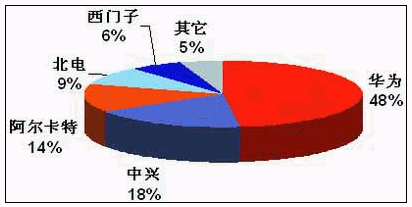 截止2004年底中國NGN設(shè)備市場(chǎng)份額