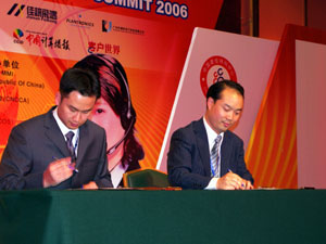 2006年9月19日,上海 值“2006(第二屆)中國呼叫中心高峰論壇”舉辦之機,今天,中國電子商會呼叫中心與客戶關(guān)系管理專業(yè)委員會(CNCCA)與大連軟件園股份有限公司(DLSP)在上海正式簽署戰(zhàn)略合作,加強彼此的交流和溝通,共同在大連軟件園組織開展呼叫中心的產(chǎn)業(yè)發(fā)展和技術(shù)研究工作。積極推動大連軟件園建設(shè)成為中國呼叫中心產(chǎn)業(yè)發(fā)展基地。