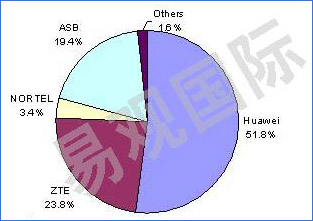 圖:中國NGN市場各設(shè)備廠商市場份額