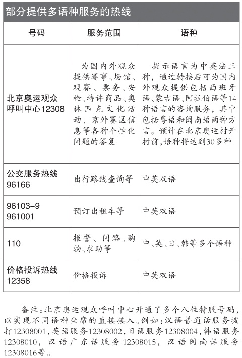 奧運觀眾可享14種語言服務 撥12308可查信息