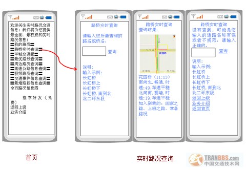 手機上通過短信查詢動態(tài)交通信息,提供動態(tài)路徑規(guī)劃,定制道路路況播報。