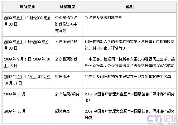 本次評選活動將邀請國內(nèi)權(quán)威客戶管理研究機(jī)構(gòu)“迪銘客戶管理研究院”為唯一測評機(jī)構(gòu)。評選自2009年5月開始,經(jīng)過一系列的評選流程,評選最終結(jié)果將于2009年11月在北京舉辦的“2009中國客戶管理大會暨中國最佳客戶俱樂部頒獎典禮”中隆重揭曉。