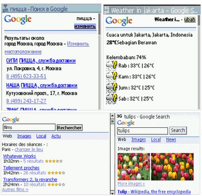 不管你使用什么智能手機,還是什么一般的手機,只要有移動網(wǎng)絡(luò),就可以使用Google移動搜索,看到專門為你手機定制的整合搜索結(jié)果頁面,你要做的只是打開Google.com,一切事情Google自己會有判斷。