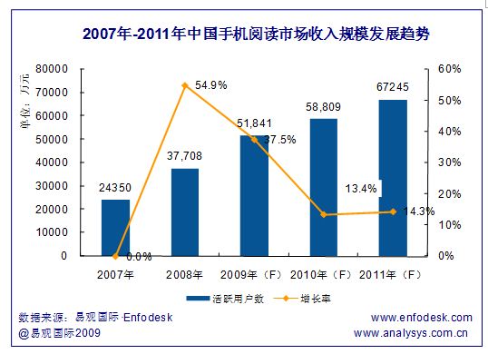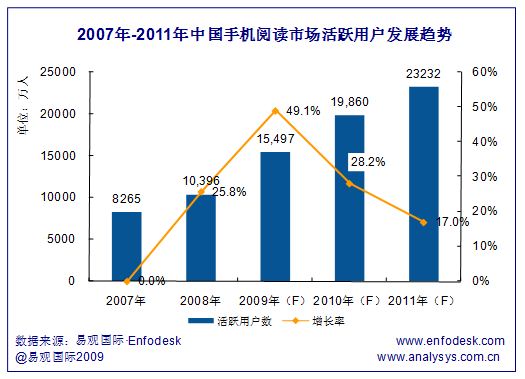 易觀預(yù)測(cè):2010年中國(guó)手機(jī)閱讀活躍用戶(hù)數(shù)將達(dá)2億