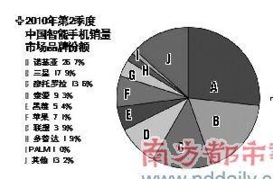 市場調(diào)研機構(gòu)易觀國際最新監(jiān)測數(shù)據(jù)顯示,中國智能手機市場2010年第2季度國內(nèi)銷售總量達1348.1萬部(不計黑手機和水貨手機),環(huán)比增長27.5%.在蘋果iOS與谷歌Android平臺沖擊下,Symbian合作伙伴在資源投入方面出現(xiàn)分化跡象,紛投蘋果、谷歌陣營,導致背后的諾基亞市場份額持續(xù)下滑。