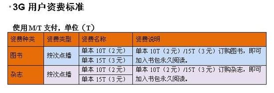據(jù)了解,中國(guó)聯(lián)通手機(jī)閱讀業(yè)務(wù)只針對(duì)聯(lián)通網(wǎng)內(nèi)手機(jī)用戶(hù),采用按次點(diǎn)播(按本訂購(gòu))的資費(fèi)標(biāo)準(zhǔn)。同時(shí),2G用戶(hù)和3G用戶(hù)采用不同的支付方式,2G用戶(hù)使用手機(jī)話(huà)費(fèi)支付,3G用戶(hù)使用M/T支付。