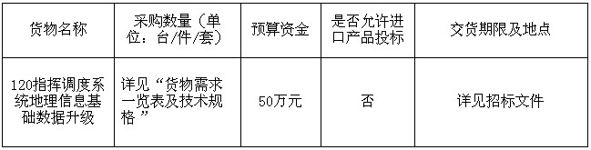 120指揮調(diào)度系統(tǒng)地理信息基礎(chǔ)數(shù)據(jù)升級采購項目招標公告