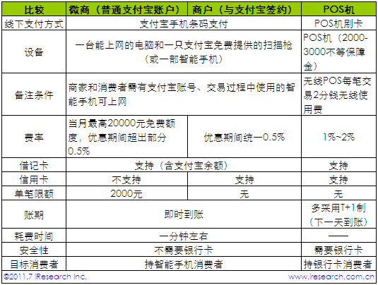 相比POS機(jī)刷卡等線下支付方式,支付寶手機(jī)條碼支付具備以下優(yōu)勢: