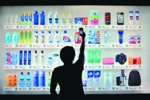 在北京和上海的許多公交站都出現(xiàn)了手機虛擬購物超市,消費者只要用手機拍下所需商品,就可享受送貨上門的服務。