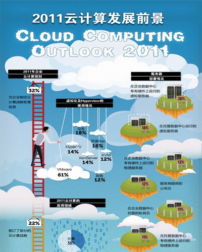 《2011云計(jì)算發(fā)展前景調(diào)查報(bào)告》的目標(biāo)在于收集企業(yè)用戶中使用虛擬化和云計(jì)算技術(shù)的信息,有助于公眾了解云計(jì)算技術(shù)及其服務(wù)的演進(jìn)。這份調(diào)查報(bào)告的結(jié)果來自2011年第二季度對(duì)BitNami、Cloud.com和Zenoss開源與系統(tǒng)管理社區(qū)中500多位用戶的調(diào)查。其目的是想看清楚云計(jì)算技術(shù)的使用趨勢(shì),并對(duì)部署虛擬基礎(chǔ)設(shè)施提供參考。