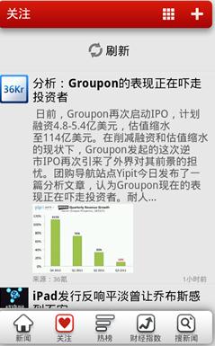圖:百度新聞移動客戶端“關(guān)注”板塊
