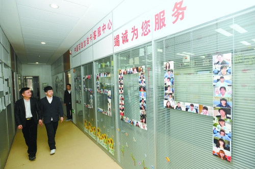 推開中國(guó)石油加油卡客服中心的大門,50個(gè)接聽(tīng)坐席進(jìn)入眼簾。身著白色上衣、藍(lán)色馬甲的客服人員忙碌地接聽(tīng)著各地客戶打來(lái)的電話。在這個(gè)中心的西墻上“一卡在手,全國(guó)加油”八個(gè)大字非常醒目。