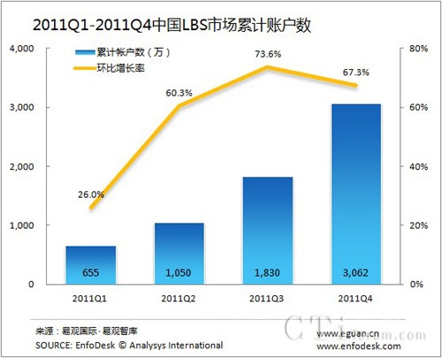 2011Q4中國LBS應(yīng)用規(guī)模突破3000萬