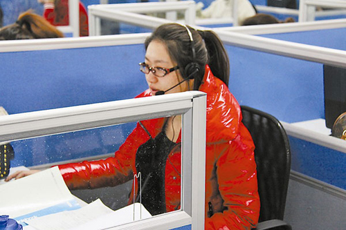 趙曉薇(化名)是拉手網(wǎng)北京客服部的一名工作人員,每天早上8:30,她會(huì)準(zhǔn)時(shí)戴上耳麥,開始一天忙碌的工作!疤孛,電話多的時(shí)候,一天得有300個(gè)來電!睍赞笔且粋(gè)語氣平和,聲音甜美,笑容溫和的女孩子。正說著,她就趕緊接通了正在鈴鈴作響的電話,開始熱情、耐心地為用戶釋疑解困。