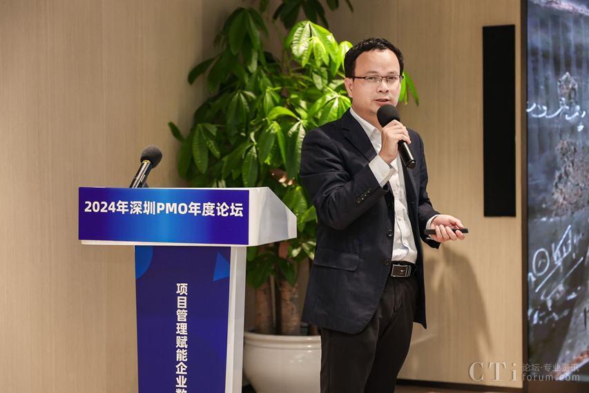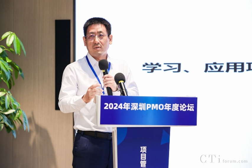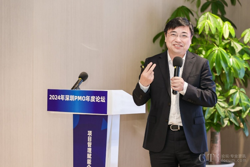 深圳市軟件行業(yè)協(xié)會執(zhí)行會長鄧愛國發(fā)表了熱情洋溢的致辭。他強(qiáng)調(diào)了PMO在數(shù)字化轉(zhuǎn)型中的關(guān)鍵作用,并表達(dá)了對與會者們的熱烈歡迎和對論壇的殷切期望。他表示,PMO是項(xiàng)目管理中的重要角色,承擔(dān)著承上啟下的作用,對于企業(yè)數(shù)字化轉(zhuǎn)型的成功至關(guān)重要。