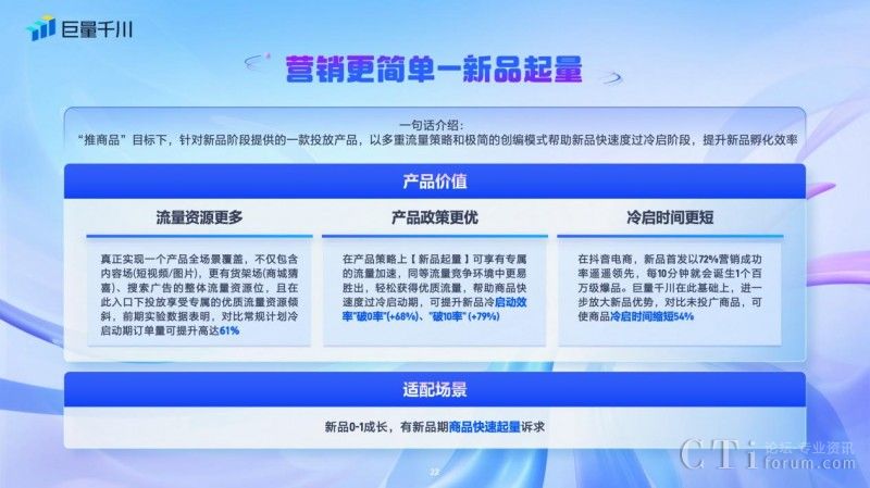 此外,投放新品起量的商品可享有平臺提供的專屬流量加速,在同等流量競爭環(huán)境下更易勝出,提升新品“破0率”和“破10率”,對比未投廣商品,可使商品冷啟時(shí)間縮短54%。這次巨量千川618好物節(jié),新客和老客投放新品起量,均有機(jī)會獲得消返紅包獎(jiǎng)勵(lì)。