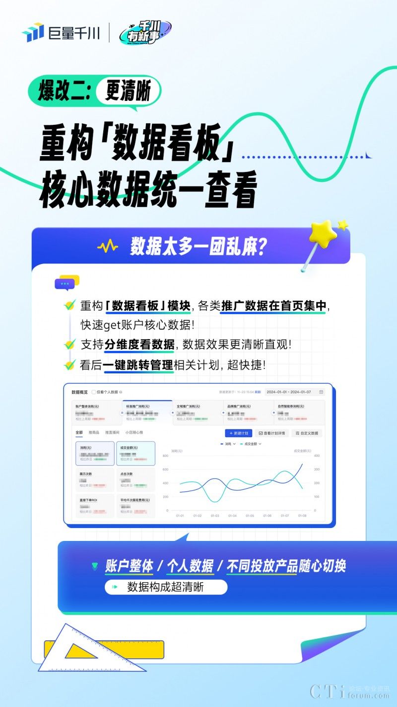 近期,為直面商家投放困境,全面提升投放效率,巨量千川PC端首頁(yè)全新推出四大重磅升級(jí)——上線「專屬診斷建議」、「數(shù)據(jù)看板」、「重磅產(chǎn)品推薦」和「平臺(tái)動(dòng)態(tài)」,助力商家更便捷、更從容地提升投放質(zhì)量和效果,高效推動(dòng)生意增長(zhǎng)!