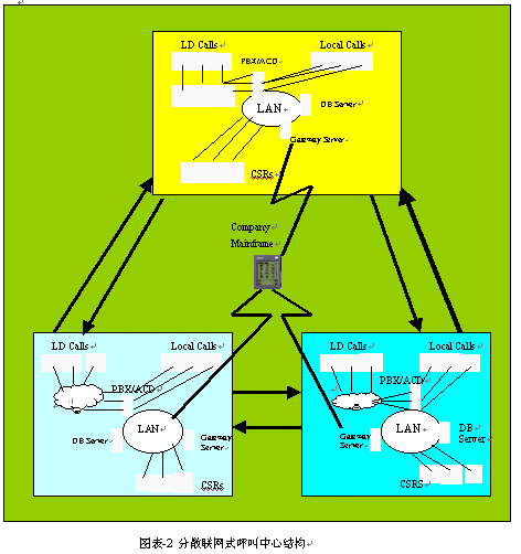 。。"對于客戶或消費者來說,其呼叫中心場所的地理分布為多點式。但采取的接入設備和技術(shù)手段(包括軟件)等,則為一地集中式接入與統(tǒng)一分配來話。"