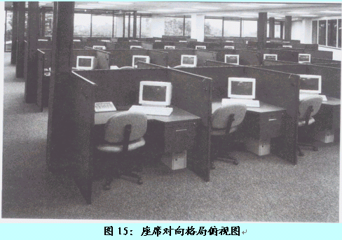。。在此格局中,客服代表采用兩兩面面相對的方式進行辦公,但位于同一側的客服代表是相同面向的。