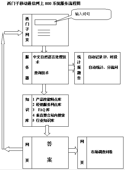 網(wǎng)上800系統(tǒng)的另外一個(gè)特點(diǎn)是自然語(yǔ)句的提問(wèn)方式,客戶(hù)可以更準(zhǔn)確、更快捷利用系統(tǒng)找到找到想要的信息;對(duì)于企業(yè)而言,客戶(hù)在用這種方式提問(wèn)時(shí),他提的問(wèn)題也是企業(yè)非常重要的,表達(dá)了客戶(hù)的需求和想法。提的問(wèn)題越明確,企業(yè)得到的有價(jià)值的信息就越多。在其系統(tǒng)的后臺(tái),客戶(hù)提出的各種問(wèn)題都被記錄下來(lái),結(jié)合其它的流量數(shù)據(jù),這些信息被不斷的積累、分析,為其營(yíng)銷(xiāo)決策服務(wù)。而且這種人性化互動(dòng)溝通方式的直接結(jié)果是,瀏覽者首先會(huì)感到自然而不受專(zhuān)業(yè)知識(shí)的約束,他會(huì)更多的去嘗試使用自然語(yǔ)言的方式來(lái)取得服務(wù),增加目標(biāo)客戶(hù)對(duì)客戶(hù)服務(wù)網(wǎng)站的依賴(lài)性。據(jù)悉,該系統(tǒng)僅首月就達(dá)到了十幾萬(wàn)的訪問(wèn)量。