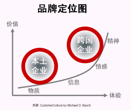 客戶體驗(yàn)是客戶關(guān)系管理的重要組成部分。根據(jù)過(guò)去數(shù)年評(píng)選中國(guó)最佳CRM實(shí)施企業(yè)所作的分析,本土與外資企業(yè)在企業(yè)體檢中各項(xiàng)主要評(píng)分中有較大差距,其中之一是客戶體驗(yàn)(-7.1分,見(jiàn)圖一、本土與跨國(guó)企業(yè)之差距)。本土企業(yè)若只提供低層次的客戶體驗(yàn),只為客戶帶來(lái)低價(jià)值,也只能打價(jià)格戰(zhàn)、做代工,很難做大做強(qiáng)打通全球市場(chǎng)。做好品牌,其實(shí)再深入一點(diǎn)說(shuō)就是要做好客戶體驗(yàn),價(jià)值(價(jià)格)才會(huì)上去(見(jiàn)圖二、品牌定位)。