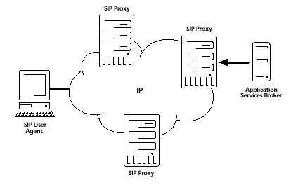 用戶終端程序往往需要包括用戶代理客戶機和用戶代理服務(wù)器。代理服務(wù)器、重定向服務(wù)器 和注冊服務(wù)器可以看作是公眾性的網(wǎng)絡(luò)服務(wù)器。在SIP中還經(jīng)常提到"定位服務(wù)器"的概念,但是定位服務(wù)器不屬于SIP服務(wù)器。SIP服務(wù)器請求定位服務(wù)的方式也不在SIP的討論范圍之內(nèi)。其在IP網(wǎng)絡(luò)中的實現(xiàn)如下所示。