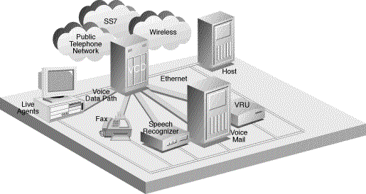 圖一描述了基于PC的交換和可編程交換是怎樣經(jīng)常一起使用,以構(gòu)造基于網(wǎng)絡(luò)的智能外設(shè)(也稱為服務(wù)點或增強型服務(wù)平臺)。