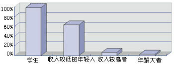消費(fèi)者根據(jù)文化程度和職業(yè)的不同,對(duì)IP電話的認(rèn)可也不一樣,其中,學(xué)生和年輕的上班族的認(rèn)知率是最高的,這和他們的收入以及較易接受新事物有關(guān)。學(xué)生的收入較低,年輕的上班族中不少人的收入不高,同時(shí)他們也是長(zhǎng)途電話的主要使用者之一。對(duì)于那些高收入的消費(fèi)者來(lái)說(shuō),IP電話所節(jié)省的費(fèi)用必要性不大,而很多話費(fèi)可以報(bào)銷(xiāo),IP電話使用又不方便,因此他們一般不使用IP電話。而對(duì)于年齡較大的消費(fèi)者來(lái)說(shuō),IP電話的不方便使用是最主要的原因之一。圖5是個(gè)人消費(fèi)者對(duì)IP電話的使用程度比較。