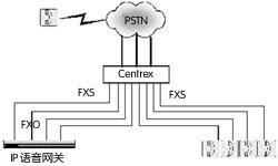 圖2 Centrex方式IP電話網關連接示意圖