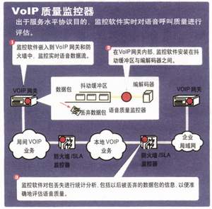 IP語(yǔ)音呼叫質(zhì)量無(wú)法用常規(guī)方式監(jiān)控。傳統(tǒng)的網(wǎng)絡(luò)監(jiān)控器的關(guān)注點(diǎn)是孤立的傳輸流統(tǒng)計(jì)數(shù)據(jù),而非固有的質(zhì)量、語(yǔ)音清晰度或最終用戶(hù)的感覺(jué)。這類(lèi)傳統(tǒng)的工具提供有關(guān)鏈路吞吐量和利用率、抖動(dòng)、延時(shí)、錯(cuò)誤、包丟失總數(shù)或丟包率的孤立的數(shù)據(jù)。然而,這些統(tǒng)計(jì)數(shù)據(jù)沒(méi)有揭示呼叫質(zhì)量,因?yàn)樗鼈兒鲆暳蒜Оl(fā)丟失,不理會(huì)抖動(dòng)緩沖區(qū)造成的包丟棄,沒(méi)有考慮網(wǎng)絡(luò)故障對(duì)用戶(hù)感覺(jué)造成的影響。
