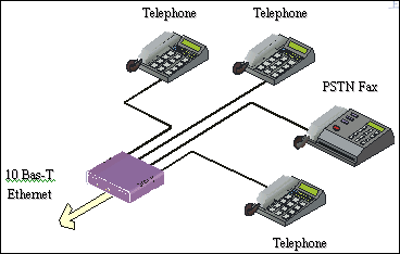 以太網(wǎng)相連,可支持兩個(gè)標(biāo)準(zhǔn)的電話(huà)終端進(jìn)行呼叫。