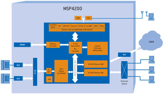 PMC-Sierra經(jīng)過現(xiàn)場驗證的語音處理模塊(VPN)可以在整個MSP產(chǎn)品系列得到支持,不管是低成本ATA還是高性能CPE寬帶路由器和網(wǎng)關(guān)方案都可以提供運營商級PSTN質(zhì)量的VoIP服務(wù)。