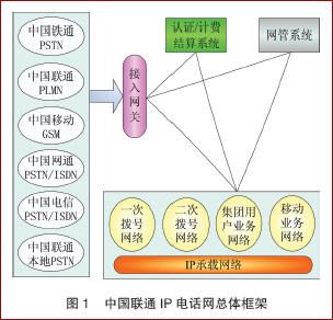 中國聯(lián)通IP電話網(wǎng)自1999年6月入運(yùn)營以來,經(jīng)過一期、二期和三期工的建設(shè),目前,網(wǎng)絡(luò)已覆蓋中國329個(gè)地市,E1端口規(guī)模超過1.8萬個(gè),成為全球最的IP電話網(wǎng)絡(luò)。網(wǎng)絡(luò)的話務(wù)量已經(jīng)達(dá)到月近10億分鐘,已是世界上流量最大的電話網(wǎng)絡(luò)。中國聯(lián)通IP電話網(wǎng)總體框架圖1所示,包括IP承載網(wǎng)絡(luò)、業(yè)務(wù)網(wǎng)絡(luò)(包式括一次撥號業(yè)務(wù)網(wǎng)、二次撥號業(yè)務(wù)網(wǎng)、集團(tuán)用戶業(yè)務(wù)網(wǎng)和移動用戶業(yè)務(wù)網(wǎng))、IP電話網(wǎng)絡(luò)管理設(shè)備(如計(jì)費(fèi)結(jié)算系統(tǒng)、網(wǎng)管系統(tǒng)等)、與各類本地網(wǎng)絡(luò)連接的接入網(wǎng)關(guān)等部分。