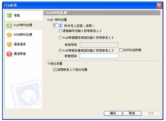 如果你使用的電話交換機比較簡單,沒有內(nèi)置有語音引導(dǎo)號碼,你可以使用 ITA的轉(zhuǎn)接任意電話功能來實現(xiàn),設(shè)置0秒啟動,將轉(zhuǎn)接密碼置為空,配置如下: