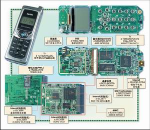 Wi-Fi功能由科勝訊(Conexant)的Prism3 802.11b芯片組完成,是一款傳統(tǒng)的專業(yè)方案。科勝訊通過收購GlobeSpan-Virata得到Prism3 802.11b,而GlobeSpan-Virata之前購買了Intersil的Wi-Fi芯片組業(yè)務(wù),所以Prism3組件仍打著Intersil的標(biāo)識(shí)。以目前的標(biāo)準(zhǔn)看,Prism3總體Wi-Fi方案的集成度不算太高。ISL3871基帶/媒體存取控制芯片與ISL3684收發(fā)器相連,一款獨(dú)立的壓控振蕩器和一個(gè)RF功放(ISL3084和ISL3984)共同支持ISL3684完成工作。適中的256KB SRAM和128KB閃存滿足該設(shè)計(jì)中802.11b部分對存儲(chǔ)器的需要。