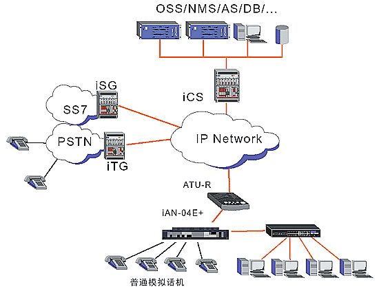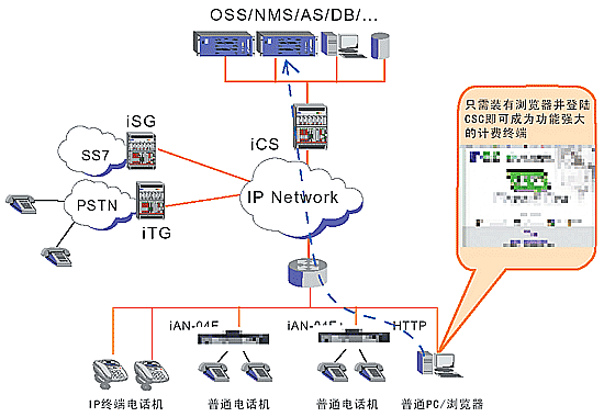 運(yùn)營商IP話吧系統(tǒng)結(jié)構(gòu)圖(五類線)