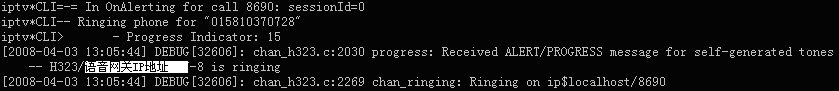 表示軟交換Asterisk與華為8010語音網(wǎng)關(guān)的H323連接在此釋放