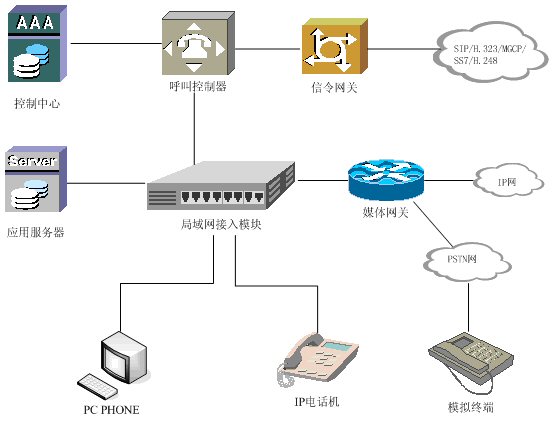 提供IP-PBX系統(tǒng)各組件之間的連接。在局域網(wǎng)的環(huán)境中,該模塊可以使用局域網(wǎng)交換機來代替。