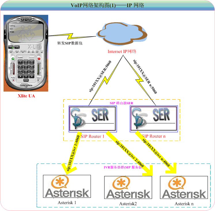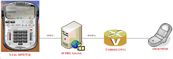 1.VoIP軟終端X-Lite,對應圖4-1的PC PHONE:PC用戶使用SIP軟終端(目前只使SIP協(xié)議作為輸入信令)訪問IP-PBX服務(wù)器軟交換后臺,對普通座機或手機發(fā)起呼叫,實現(xiàn)PC2Phone的通訊。