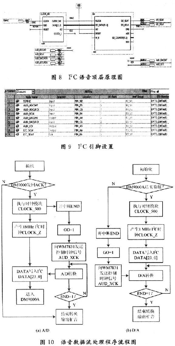 由于語音編解碼器的處理延時是影響VoIP話音質(zhì)量的因素之一,為了保證語音編解碼的實時性,軟件系統(tǒng)在控制WM8731編解碼器的編解碼同時,加入了I2C語音模塊,以實現(xiàn)語音數(shù)據(jù)的實時處理。它采用自頂向下設(shè)計方法利用QuartusⅡ進行設(shè)計。