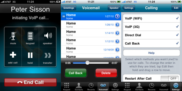 一家來自舊金山的VoIP廠商公布了一款iPhone上運(yùn)行的VoIP應(yīng)用,Line2.這款僅售99美分的程序可以讓你在Wi-Fi與3G網(wǎng)絡(luò)上撥打VoIP電話,只要每月14.95美元,您就可以隨意通過這款網(wǎng)絡(luò)電話撥打美國(guó)和加拿大,這一切只需要您有3G或者Wi-Fi信號(hào)即可。