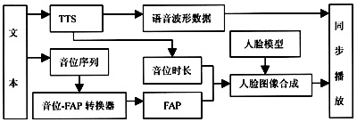 系統(tǒng)由語音合成部分提供時間同步信息,實現(xiàn)完全同步的語音和圖像播放。系統(tǒng)中語音的發(fā)音速度可調(diào),圖像以固定的幀速率播放,不受語音快慢的影響。當(dāng)語音速度加快時,每個音節(jié)的圖像幀數(shù)將減少;反之,當(dāng)語音速度放慢時每個音節(jié)的圖像幀數(shù)將增加。圖像的幀速率可根據(jù)系統(tǒng)性能來調(diào)節(jié),使系統(tǒng)在各種性能的機器上均能保持語音與圖像的同步。