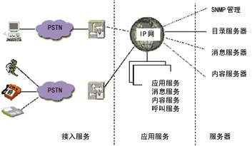數(shù)據(jù)交換技術(shù)的發(fā)展使IP逐漸成為數(shù)字、語(yǔ)音等各種信息服務(wù)的網(wǎng)絡(luò)基礎(chǔ)標(biāo)準(zhǔn)。各種基于IP傳送話音、視頻的技術(shù)標(biāo)準(zhǔn)(如SGCP、VoIP等)也不斷提出并迅速統(tǒng)一。那么,基于IP的統(tǒng)一消息方案由兩部分組成:通用信息接收箱功能模塊和通用連接手段。通用信息接收箱功能模塊用于把所有形式的消息,如傳真、話音郵件、電子郵件等集成到一個(gè)IP網(wǎng)上的通用接收箱,用來(lái)提供給用戶一個(gè)公共平臺(tái),來(lái)管理所有的消息。通用連接手段允許用戶通過(guò)電話網(wǎng)、DSL網(wǎng)、有線電視網(wǎng)和無(wú)線網(wǎng),使用電話、PC、電子郵件客戶設(shè)備、Web瀏覽器、無(wú)線手持設(shè)備和PDA訪問(wèn)通用信息接收箱。