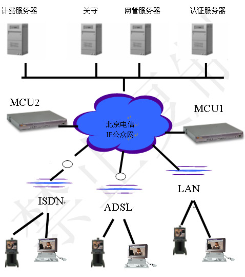 H.323協(xié)議的視訊平臺包括兩個層面:視訊交換網(wǎng)絡(luò)和運(yùn)營支撐網(wǎng)絡(luò)。視訊交換網(wǎng)絡(luò)包括MCU、Gatekeeper、Gateway、終端等。運(yùn)營支撐網(wǎng)絡(luò)包括網(wǎng)絡(luò)管理系統(tǒng)、認(rèn)證計費系統(tǒng)、資源管理系統(tǒng)、會議控制系統(tǒng)、用戶管理系統(tǒng)、客戶服務(wù)系統(tǒng)等。