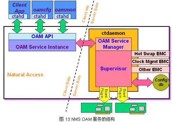 最后,我們這里給出NMS OAM服務的結(jié)構(gòu)模式,如圖13,可以看到前面的管理工具也是通過OAM API實現(xiàn)的