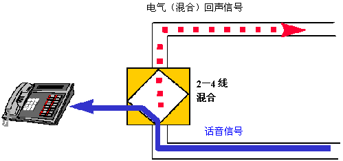 回聲消除器首先是在為長途應(yīng)用而設(shè)計(jì)的網(wǎng)絡(luò)中引入的。長途應(yīng)用中包含過量的傳播延遲,這種現(xiàn)象突顯出了將雙線連接轉(zhuǎn)換為四線系統(tǒng)的混合線路的不完整性。這種混合線路的不完整性被描述為"信號泄漏"或因阻抗失配而導(dǎo)致的信號反射,稱為網(wǎng)絡(luò)電氣回聲(也稱為混合回聲)。在圖1中,描述了這種現(xiàn)象。