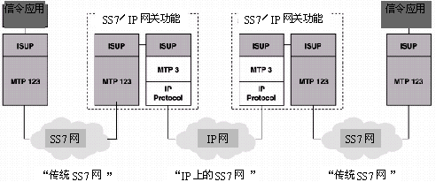 就是兩個(gè)PSTN網(wǎng)絡(luò)之間通過(guò)IP網(wǎng)絡(luò)連接起來(lái),PSTN網(wǎng)絡(luò)間的SS7信令信息通過(guò)IP網(wǎng)透明地傳送到對(duì)方。這樣做的目的是:不管呼叫是通過(guò)基于電路的PSTN還是通過(guò)VoIP網(wǎng)絡(luò),都能向用戶(hù)提供相同的隨時(shí)隨地的接入和業(yè)務(wù)功能集。另外,通過(guò)IP網(wǎng)傳遞SS7所需要的基礎(chǔ)傳輸設(shè)備成本明顯要比傳送傳統(tǒng)SS7所需要的基礎(chǔ)傳輸設(shè)備低得多。(參考圖9)