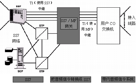 如圖14所示,SS7/MF網(wǎng)關(guān)可以實(shí)現(xiàn)SS7信令到MF(多頻)信令的轉(zhuǎn)換,使現(xiàn)有MF信令交換機(jī)無(wú)須升級(jí)就能擁有SS7信令能力;旌狭薙S7和基于音頻信令的呼叫建立環(huán)境能為各種運(yùn)營(yíng)商經(jīng)濟(jì)實(shí)用的SS7網(wǎng)絡(luò)接入方案,采用這一方案的有蜂窩電話(huà)運(yùn)營(yíng)商、本地電話(huà)運(yùn)營(yíng)商、長(zhǎng)途電話(huà)運(yùn)營(yíng)商和其它一些仍使用舊式交換機(jī)的電話(huà)運(yùn)營(yíng)商。
