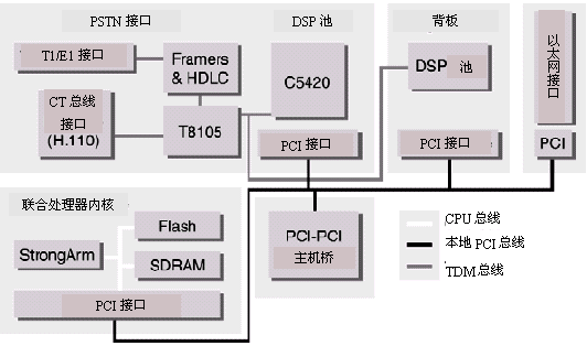 通用端口的AG系列平臺(tái)集合了以下接口或功能:電話接口,一個(gè)由眾多DSP芯片組成的板上控制器用于支持G3傳真功能,語音和DTMF處理,呼叫接續(xù),CT總線(H.100)或MVIP總線交換。AG2000(8端口環(huán)路中繼或DID,或者是它們的組合)。AG4000-T1(24-96端口),以及AG4000-E1(30-120端口)可以插在同一個(gè)PCI(或Compact PCI)插槽上。