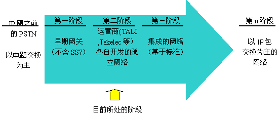 PSTN網(wǎng)和IP網(wǎng)的集成可以分成以下幾個(gè)發(fā)展階段: